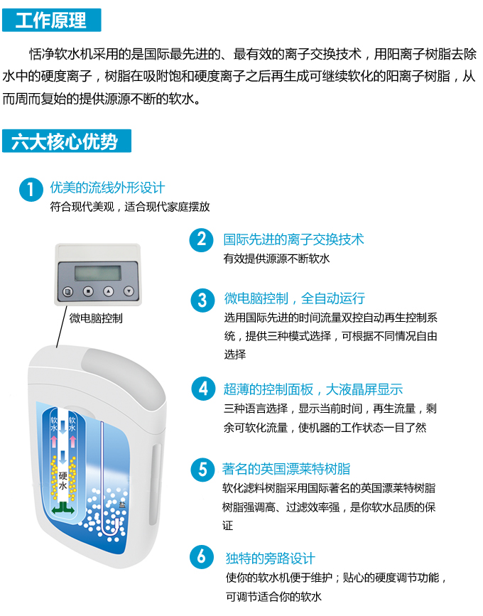 Tendge恬凈中央軟水機(jī)采用的軟水技術(shù)是目前最先進(jìn)的、最有效的離子交換技術(shù),采用離子交換技術(shù)去除水中的硬度離子,防止水垢生成并提高用水的舒適度。