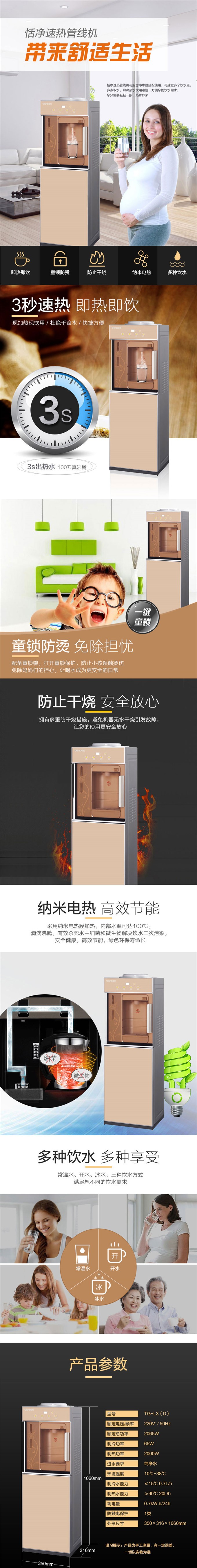 恬凈速熱管線飲水機TG-L3(D),采用納米電熱膜加熱技術(shù),有效殺死水中的細(xì)菌微生物,防治二次污染。3秒速熱,隨時可喝上熱水。恬凈速熱管線飲水機TG-L3(D)自帶防干燒系統(tǒng)與童鎖,安全省心。